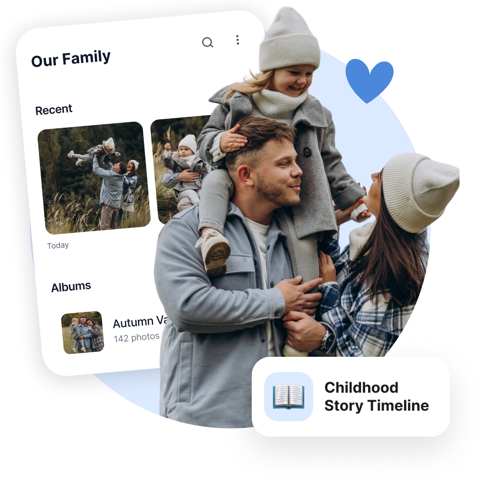 My Family Album organizes your child's photos and videos into beautiful, private stories, creating a meaningful timeline of their childhood to share safely with family.